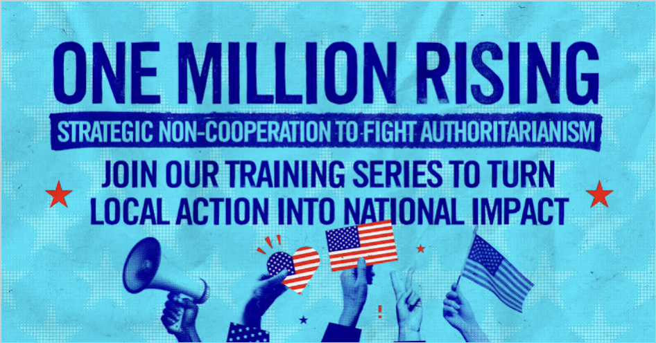*National Indivisible organized event Foundations: The Moment and Your Mission (View video of event HERE) from Wednesday, July 16, 2025 Wednesday, July 30, 2025 - Train-the-Trainer, How to Make it Happen Wednesday, August 13, 2025 - Campaign Design: What Now? Organizing Action Time:Â 5:00 - 6:00 pm Location:Â Virtual, Register HERE One Million Rising is […]